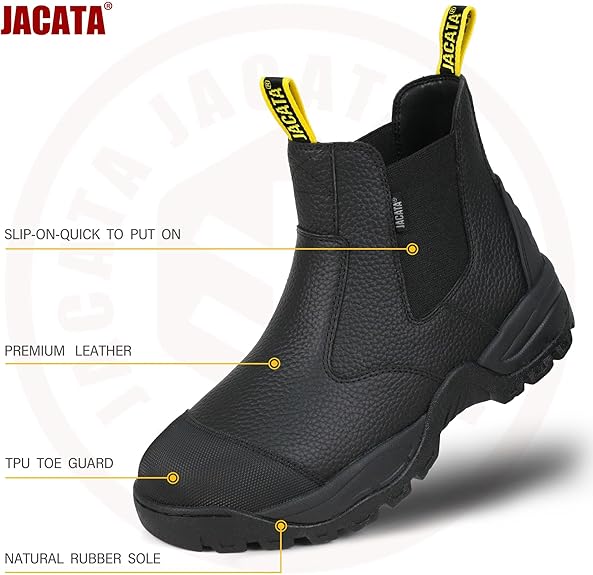 Applicable Workplace : The jacata mens slip on shoes boots safety toe designed for all seasons,offers comfort for work life.It provides protection when working in factories,construction sites,mechanical operations,etc.