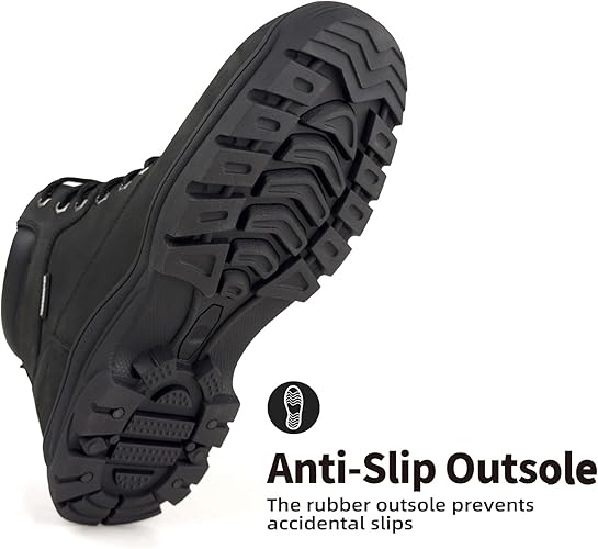 Non Slip Working Boots: The thick rubber outsole of these non slip work boots provides excellent traction on slippery rocks. Protecting you from slips and falls on oily, rainy, chemical, or other slippery surfaces.