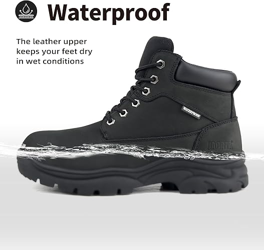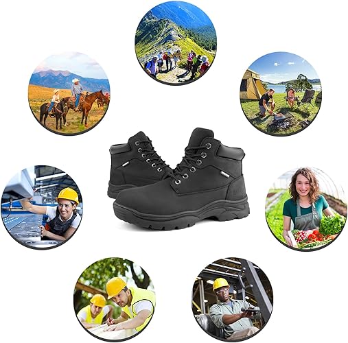 Perfect Industrial Construction Boots: The soft mesh neckline prevents ankle pain and gives not only soft and comfortable,but also ventilate moisture wicking,anti-odour,shock-absorbing. Men's work boots feature all-season waterproof protection, delivering comfort and safety for daily life and occupational activities. An ideal companion for hiking adventures, they also serve as perfect footwear for workers in factories, construction sites, mechanical operations, and farm settings.