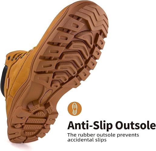Comfortable Foot Feel: Featuring cushioned insoles, padded collars, and extra ankle padding, these soft toe work boots ensure exceptional comfortable and support during long hours on the job.